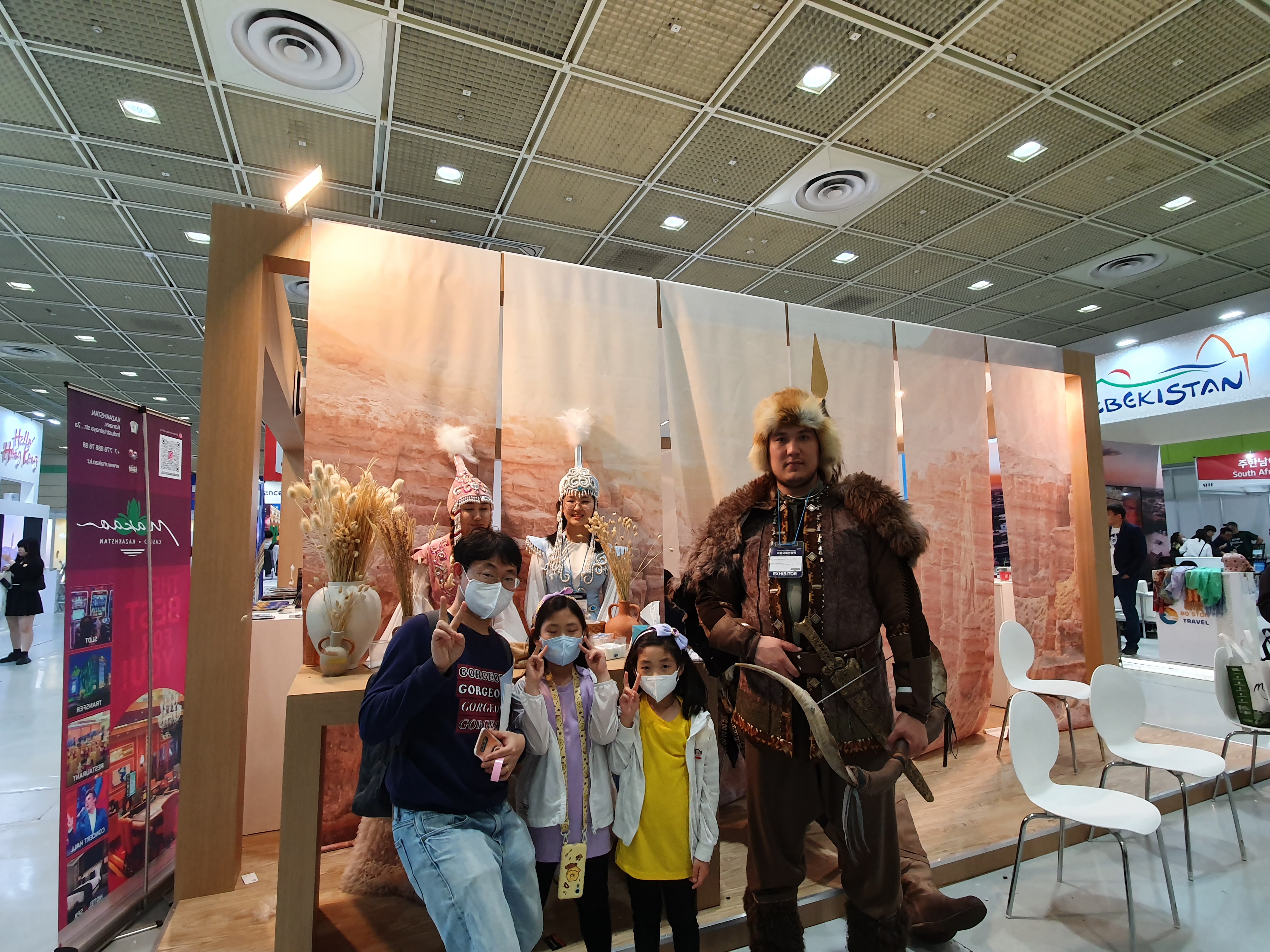 관광 박람회는 세계 여러 나라의 여행사에서 각국의 명소와 문화를 알리고 있었습니다. 그래서 저희 가족은 전통의상을 입은 우즈베키스탄 사람들과 기념사진도 찍을 수 있었습니다. 그리고 각 여행사마다 선물도 주고, 재미있는 이벤트를 해서 보는 재미와 받는 재미가 있었습니다. 참고로 홍콩 여행사에서는 방문객들에게 컬러링북과 미니 색연필을 나누어 주었습니다.