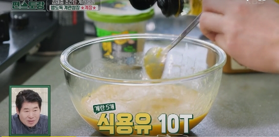 5. 계장에 식용유를 10T 넣습니다.