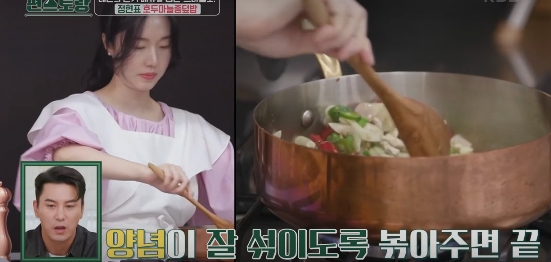 편스토랑에서 이정현이 대만의 인기 음식인 창잉터우를 한국식으로 만들었습니다.