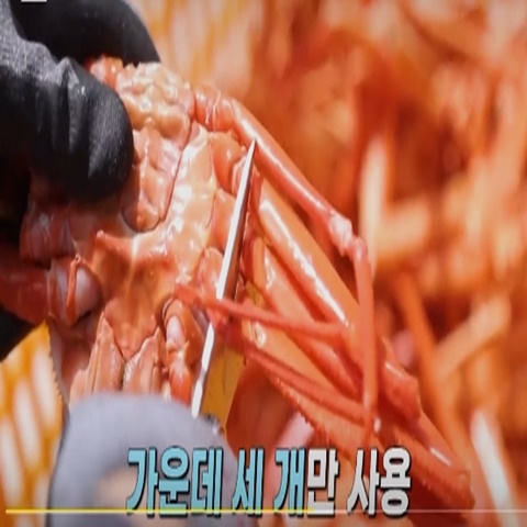 그 뒤에 홍게는 몸통, 집게 다리, 제일 밑의 다리에는 살이 없으므로